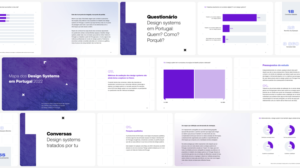 Resultado de alguns meses de trabalho, o estudo que se tangibiliza no seu relatório, congrega a informação e conclusões das conversas "Design systems tratados por tu” e do questionário online “Design systems em Portugal: Quem? Como? Porquê?”, aberto a toda a comunidade e que contou com a participação de 102 profissionais.